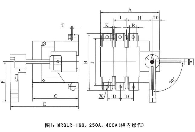 MRGLR-160、250A、400A的外形與安裝尺寸(尺寸見表)