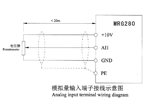 1個模擬量輸入端子,支持-10V~10V電壓輸入,