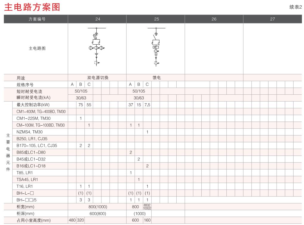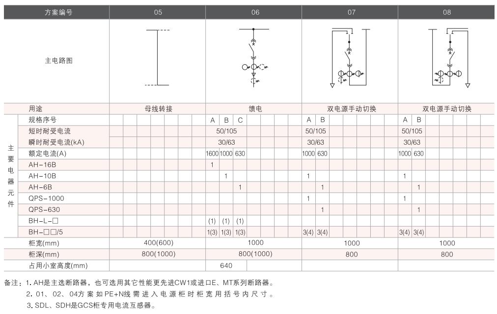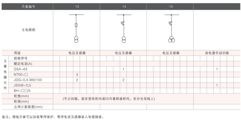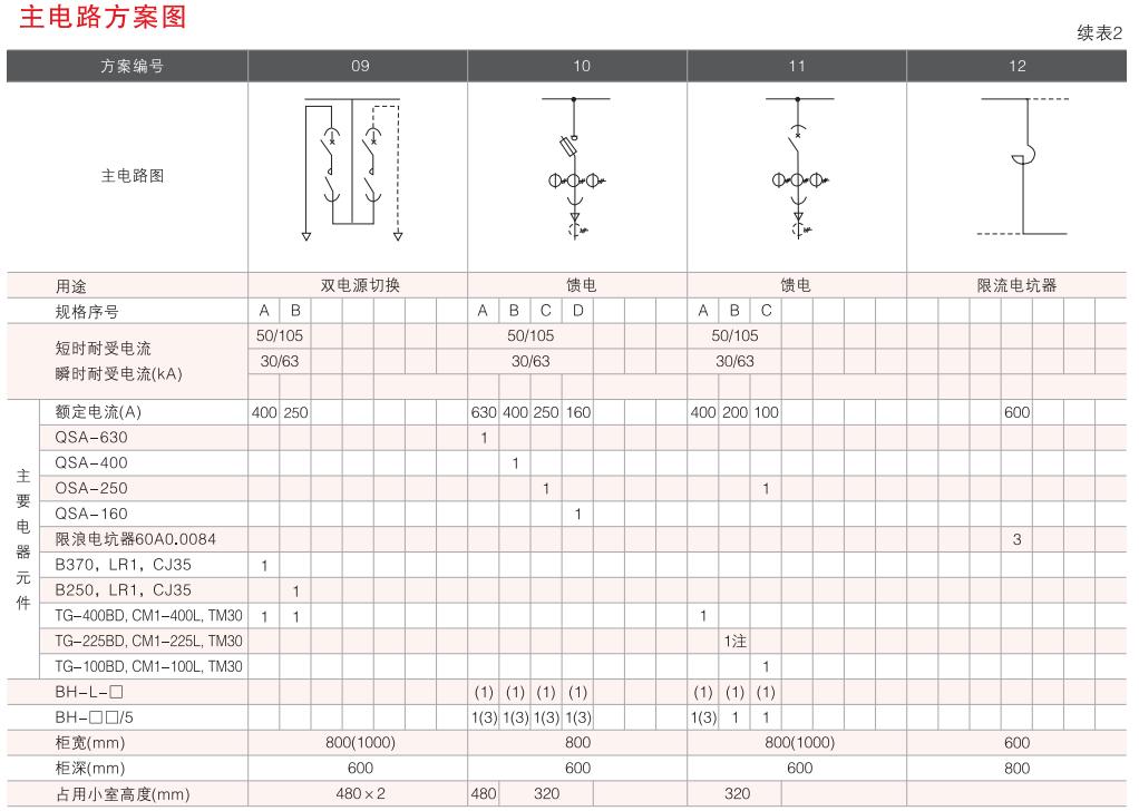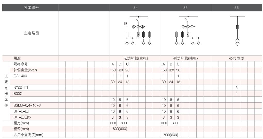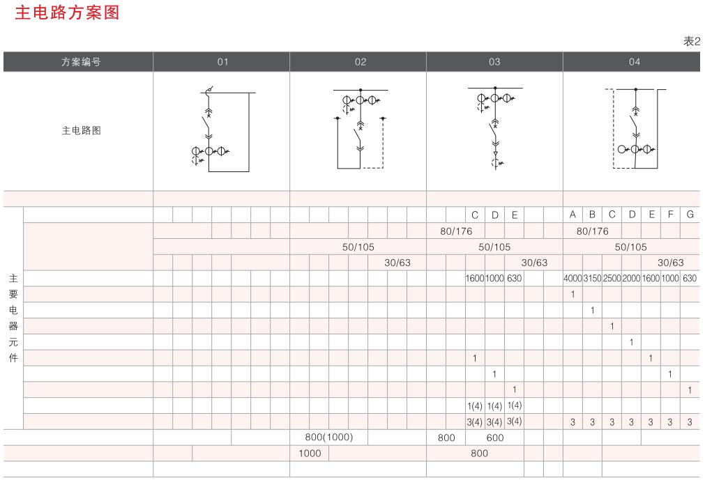 開(kāi)關(guān)設(shè)備主電路方案共32組118個(gè)規(guī)格(見(jiàn)表2).不包括由于輔助電路的控制與保護(hù)的變化而派生的方案和規(guī)格。包括了發(fā)電、供用電和其它電力用戶(hù)的需要,額定工作電流為4000A,適合2500kVA及以下的配電變壓器選用。